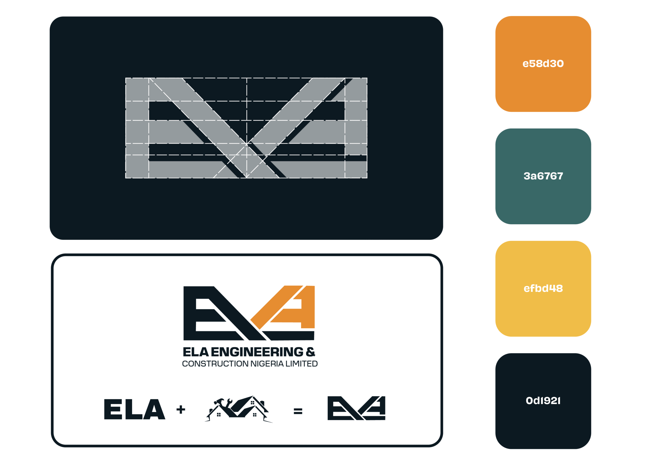 Pour ELA Engineering, une entreprise de construction basée au Nigeria, j’ai créé une identité visuelle minimaliste et moderne. Le design met en avant la solidité et la précision à travers une typographie géométrique et des lignes épurées.
