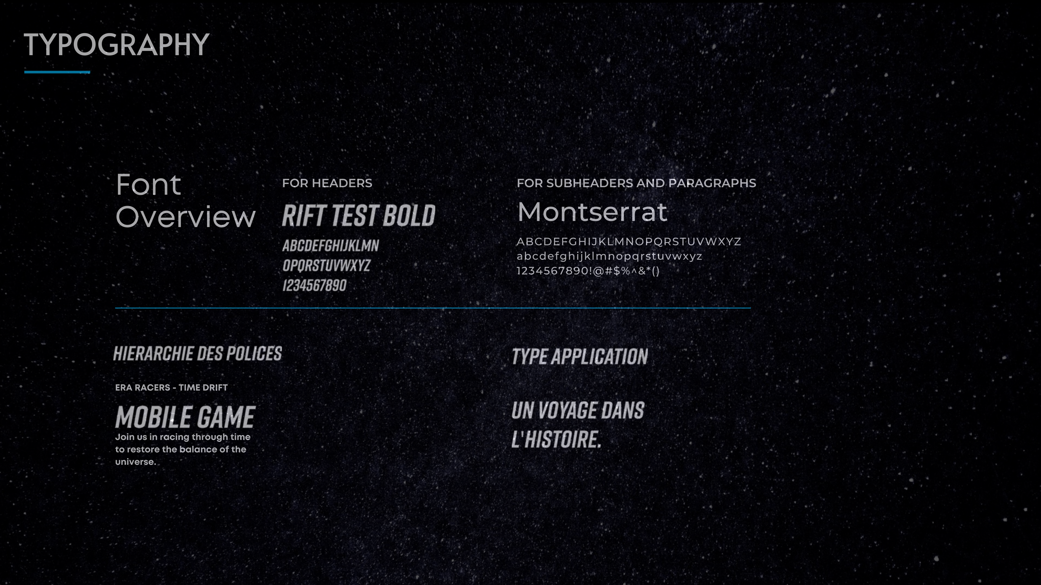 Le design met l’accent sur la vitesse, l’aventure et la découverte à travers une interface claire et dynamique. Les choix typographiques et les éléments visuels ont été pensés pour renforcer l’immersion dans chaque époque tout en garantissant une expérience utilisateur fluide et intuitive.